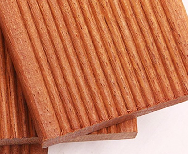 菠萝格木材心边材区别明显,边材淡黄白色至灰白色,心材红褐色至淡栗褐色,具有深色带状条纹;生长轮明显;散孔材,管孔大小中等,单管孔及短径列复管孔,内含物丰富;轴向薄壁组织明显,呈环管状、翼状、少数聚翼状和轮界状;木射线细、甚多。木材有光泽,特殊气味和滋味;纹理交错,结构略粗;具有密度大(0.64-0.91g/cm3)、材质重、材性稳定、强度高、尺寸稳定性好、心材耐久、含油、天然防腐防虫和抗潮抗白蚁性极强等优点,其颜色深受人们喜爱,常被用于制作门窗、高级家具室内装饰、门窗柜、车船桥梁、地板,是户外家具、户外地板、扶手楼梯、亭台楼阁和木质建筑的重要用材树种,也是红木家具的替代品)。由于在木地板现有材种中稳定性最好,售后问题也很少,印茄木是目前市场上的主销地板,也是户外材常用的树种之一。户外用材需要耐潮湿、耐日晒、耐温差、防开裂、防虫蛀、防变形等多种要求。